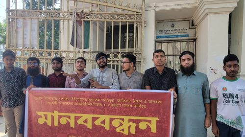 শান্তিগঞ্জের শ্যামনগরে প্রভাবশালী কর্তৃক কবরস্থান দখলের প্রতিবাদে দুই গ্রামবাসীর মানববন্ধন