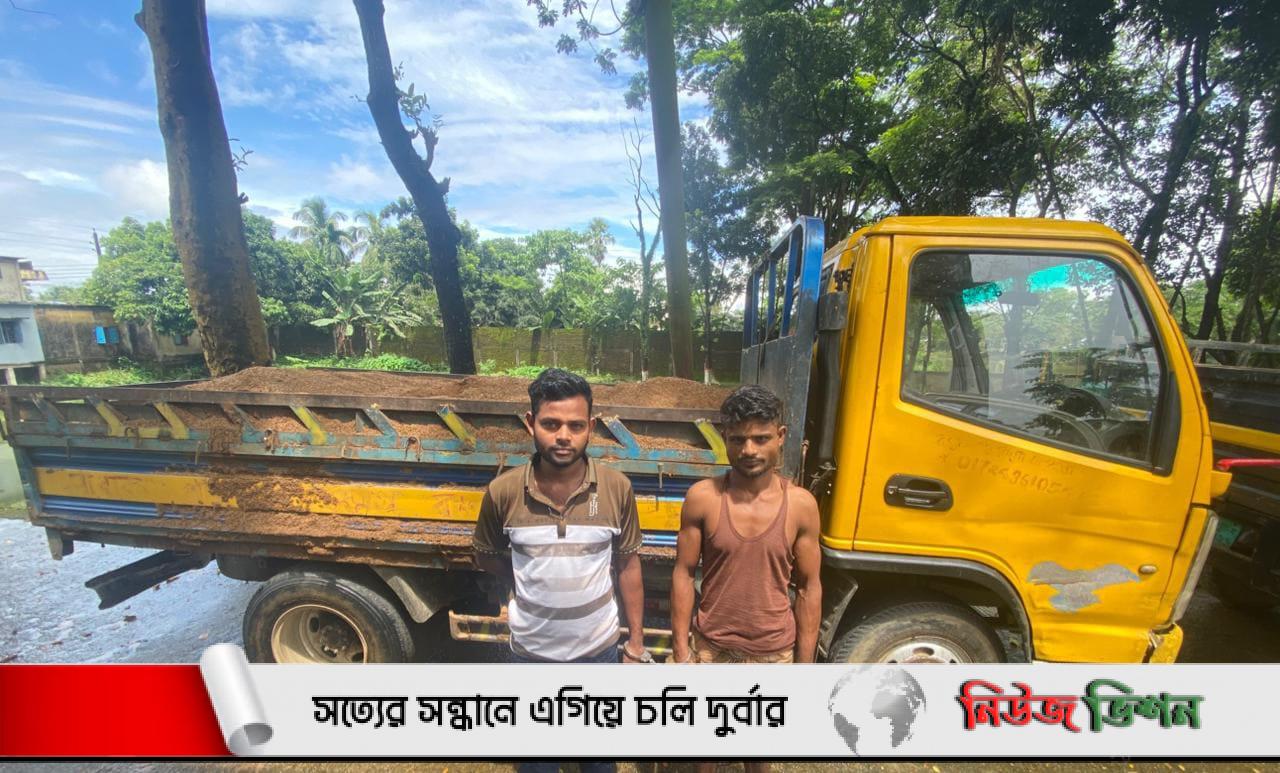 দোয়ারাবাজারে অবৈধ ভাবে বালু উত্তোলনের সময় ট্রাকসহ দুইজন আটক