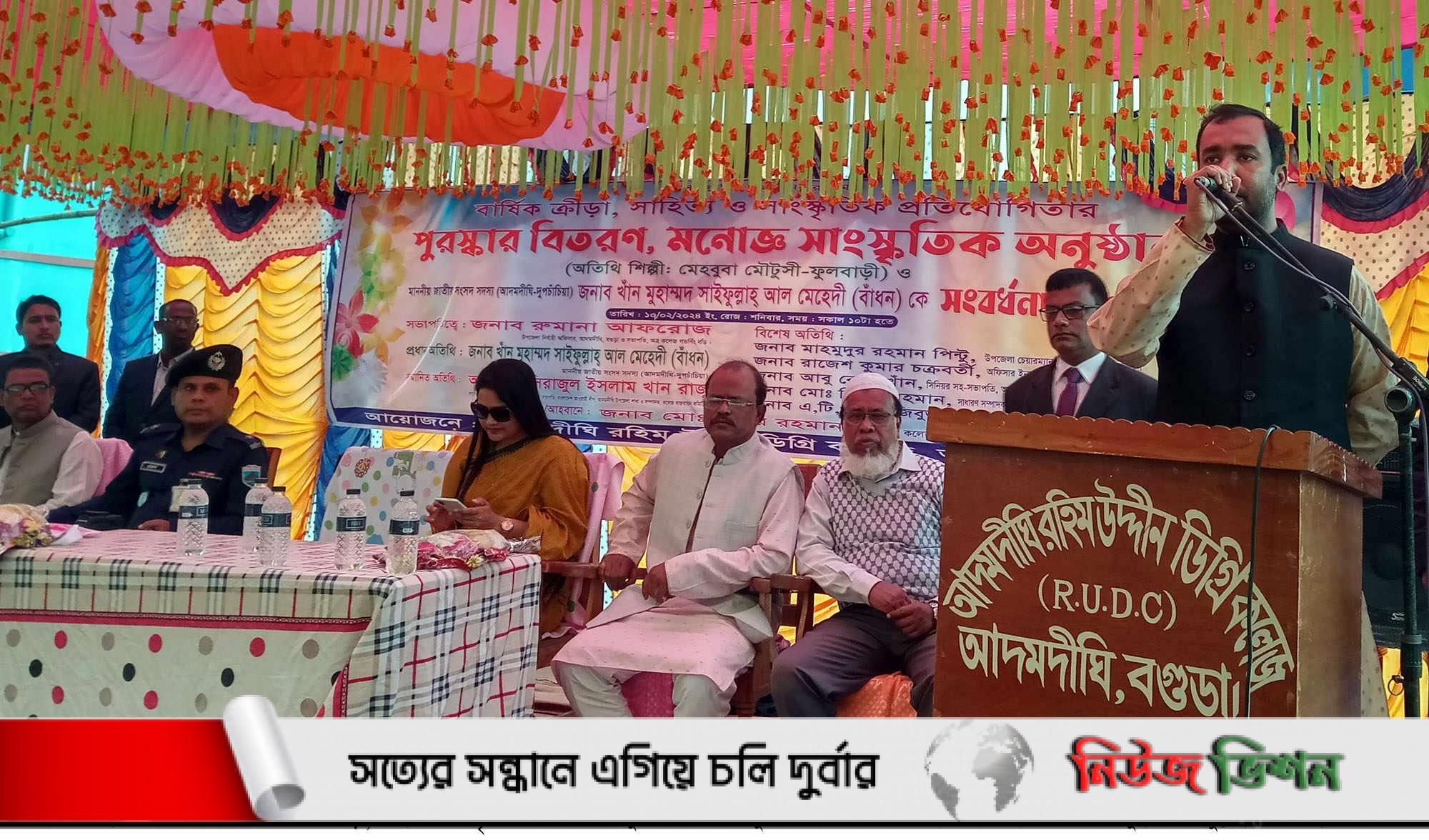 তিনি শনিবার (১৭ ফেব্রুয়ারী) দুপুরে আদমদীঘি রহিম উদ্দিন ডিগ্রী কলেজের বার্ষিক ক্রীড়া সাহিত্য সাংস্কৃতিক প্রতিযোগিতায় বিজয়ীদের মাঝে পুরষ্কার বিতরণ ও তাকে দেয়া সংবর্ধনা অনুষ্ঠানে প্রধান অতিথির বক্তব্যে এ কথা বলেন।