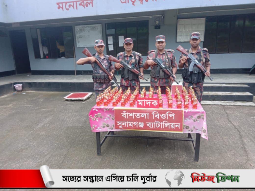 সুনামগঞ্জ ব্যাটালিয়ন (২৮বিজিবি) আওতাধীন বাঁশতলা বিওপিতে কর্মরত নায়েক মোঃ রবিউল ইসলামের নেতৃত্বে টহলদল মদের চালান জব্দ করে।