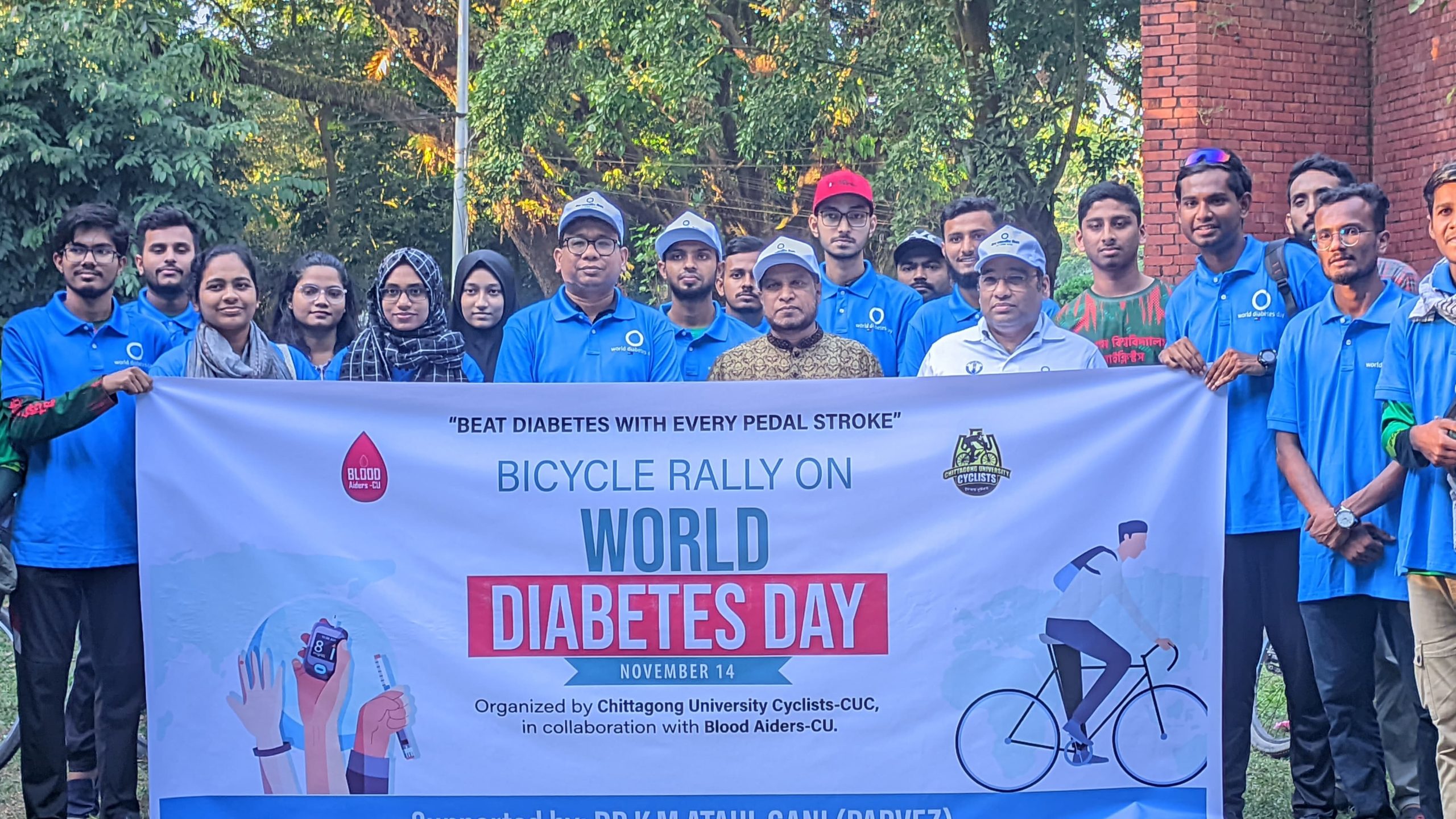 ডায়াবেটিস প্রতিরোধে স্বাস্থ্যকর জীবনধারা, নিয়মিত ব্যায়াম এবং পরিবেশবান্ধব যাতায়াতকে উৎসাহিত করতে আজ ১৪ নভেম্বর বিশ্ব ডায়াবেটিস দিবস উপলক্ষ্যে চট্টগ্রাম বিশ্ববিদ্যালয়ে বাইসাইকেল র‍্যালির আয়োজন করেছে চট্টগ্রাম বিশ্ববিদ্যালয় সাইক্লিস্ট সংগঠন এবং সহযোগী হিসেবে ছিলো ব্ল্যাড এইডার্স চবি।
