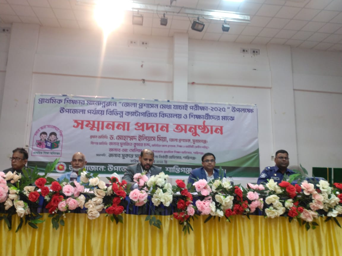 প্রাথমিক শিক্ষার মানোন্নয়ন এবং শিক্ষার্থীদের প্রকৃত মেধা যাচাই নিশ্চিত করতে “জেলা প্রশাসন মেধা যাচাই পরীক্ষা-২০২৫” উপলক্ষে শান্তিগঞ্জে উপজেলা পর্যায়ে বিভিন্ন ক্যাটাগরিতে বিদ্যালয়, শিক্ষক ও শিক্ষার্থীদের মাঝে সম্মাননা প্রদান করা হয়েছে।
