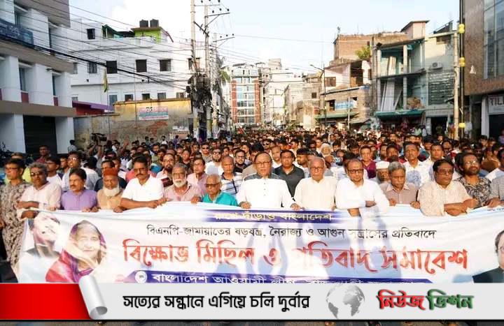 এরআগে বিকেল ৫টায় নগরীর রাণীবাজারস্থ জননেতা এ.এইচ.এম খায়রুজ্জামান লিটন এঁর রাজনৈতিক কার্যালয় প্রাঙ্গন থেকে বিক্ষোভ মিছিল বের করা হয়। মিছিলটি বিভিন্ন সড়ক প্রদক্ষিণ শেষে সাহেব বাজার জিরো পয়েন্টে গিয়ে শেষ হয়। এরপর সেখানে প্রতিবাদ সমাবেশ অনুষ্ঠিত হয়। মিছিলে নেতৃত্ব দেন ও প্রতিবাদ সমাবেশে প্রধান অতিথির বক্তব্য দেন আওয়ামী লীগের সভাপতিমণ্ডলীর সদস্য রাসিক মেয়র এ.এইচ.এম খায়রুজ্জামান লিটন।
