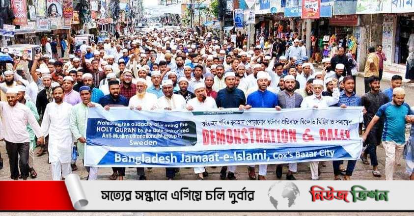 সুইডেনের রাজধানী স্টকহোমের কেন্দ্রীয় মসজিদের সামনে পবিত্র কুরআন মজিদে অগ্নিসংযোগের ঘটনার প্রতিবাদে কেন্দ্রীয় কর্মসূচির অংশ হিসেবে বিক্ষোভ মিছিল ও সমাবেশ করেছে বাংলাদেশ জামায়াতে ইসলামী কক্সবাজার শহর শাখা।