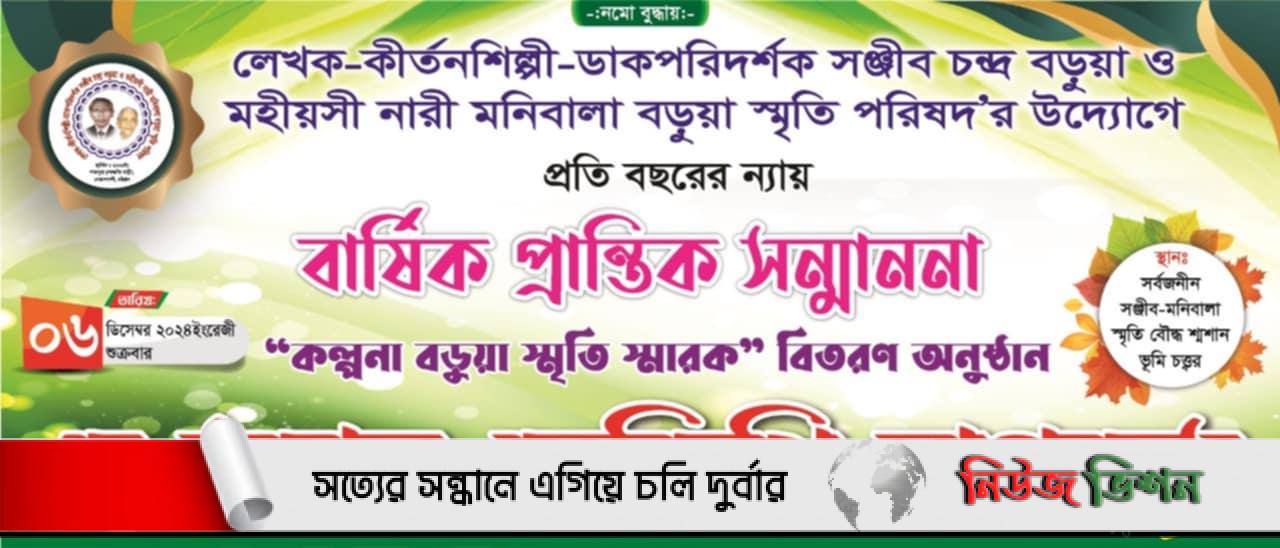 চট্টগ্রামের বোয়ালখালী উপজেলার শাকপুরাস্থ লেখক-কীর্তনশিল্পী-ডাকপরিদর্শক সঞ্জীব চন্দ্র বড়ুয়া ও মহিয়সী নারী মনিবালা বড়ুয়া স্মৃতি পরিষদের বার্ষিক প্রান্তিক সন্মাননা আগামীকাল শুক্রবার (৬ ডিসেম্বর) বেলা ২টায় অনুষ্ঠিত হবে।