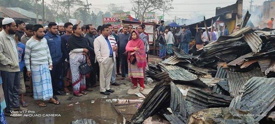 এসময় তার সাথে ঘটনাস্থলে উপস্থিত হন গৌরনদী উপজেলা পরিষদ চেয়ারম্যান মনিরুন নাহার মেরী, উপজেলা নির্বাহী অফিসার গৌরনদী ইসরাত জাহান, জেলা ত্রাণ ও পুনবার্সন কর্মকর্তা প্রশান্ত কুমার রায়। ঘটনাস্থল পরিদর্শন কালে ক্ষতিগ্রস্তদের সহযোগিতার আশ্বাস প্রদান করেন জেলা প্রশাসক বরিশাল। অগ্নিকান্ডে ক্ষতির পরিমাণ নিরুপন করার কার্যক্রম চলমান রয়েছে।