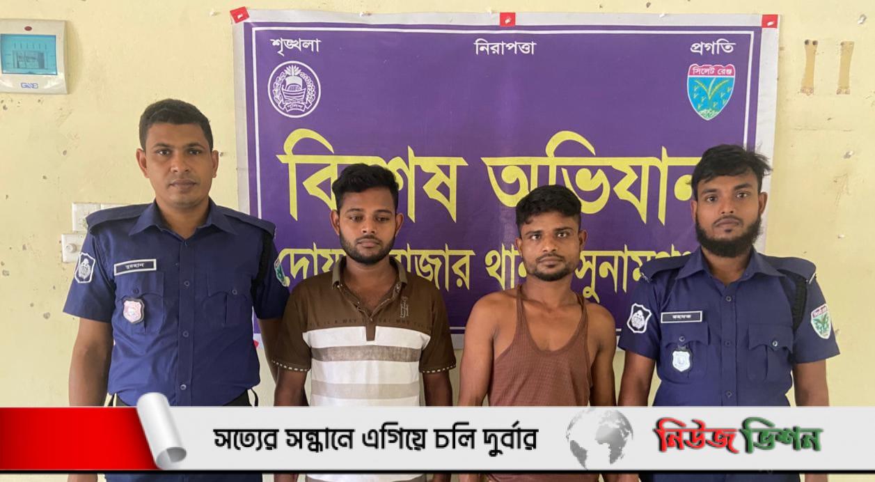 দোয়ারাবাজারে অবৈধ ভাবে বালু উত্তোলনের সময় ট্রাকসহ দুইজন আটক