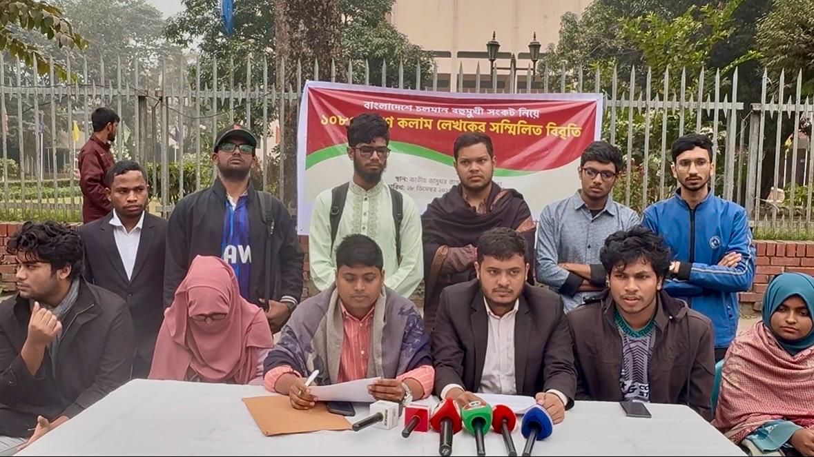 সংবাদ সম্মেলনে সংগঠনের নেতারা জানান, দেশে চলমান গণতান্ত্রিক স্থিতিশীলতা, নাগরিক নিরাপত্তা, জীবনযাত্রার মান এবং মতপ্রকাশের স্বাধীনতার প্রেক্ষাপটে বাংলাদেশ তরুণ কলাম লেখক ফোরামের উদ্যোগে দেশের বিভিন্ন বিশ্ববিদ্যালয়ের প্রায় এক হাজার তরুণ কলামিস্ট দায়িত্বশীল নাগরিক অবস্থান থেকে এই যৌথ বিবৃতি প্রদান করছেন।