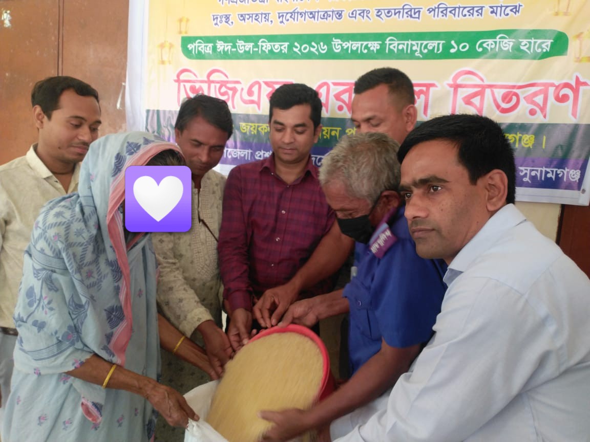 ‎সুনামগঞ্জের শান্তিগঞ্জ উপজেলার জয়কলস ইউনিয়নের দুস্থ ও অসহায় উপকারভোগীর মধ্যে পবিত্র ঈদুল ফিতর উপলক্ষে  ভিজিএফ চাল বিতরণ করা হয়েছে।