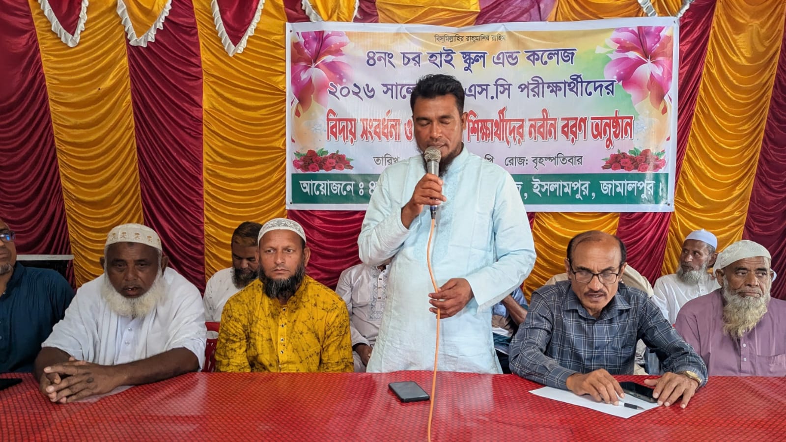 জামালপুরের ইসলামপুরে চরপুটিমারী ইউনিয়নের ৪ নং চর হাই স্কুল এন্ড কলেজে এসএসসি ২০২৬ সালের পরীক্ষার্থীদের বিদায় এবং নবীন শিক্ষার্থীদের বরণ উপলক্ষে এক বর্ণাঢ্য অনুষ্ঠানের আয়োজন করা হয়েছে।
