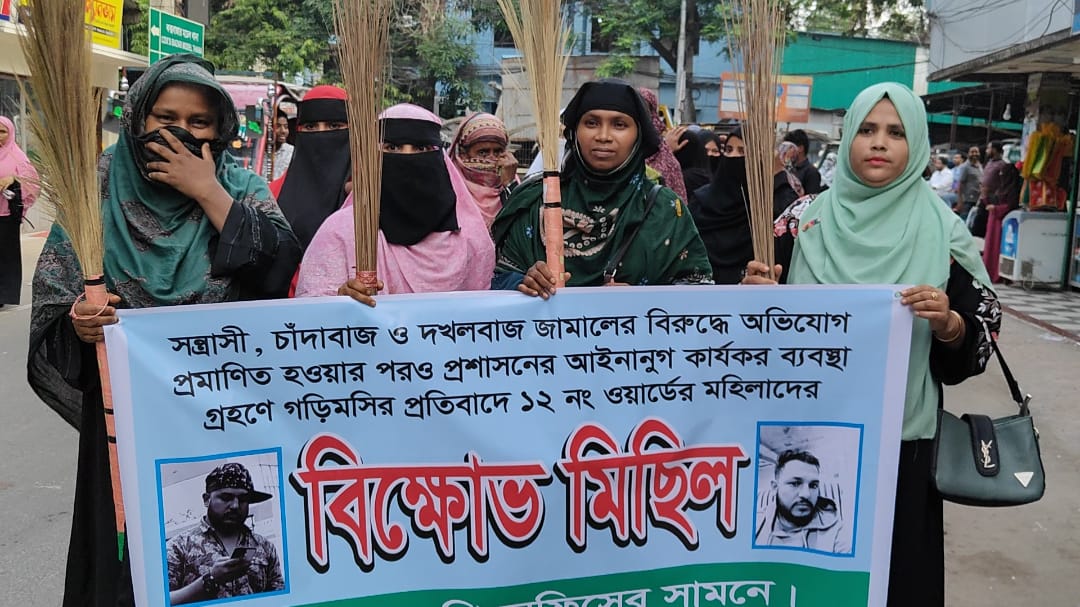 এ অবস্থায় নিরাপত্তাহীনতায় ভুগতে থাকা এলাকাবাসী ক্ষোভে ফেটে পড়ে রাস্তায় নেমে আসে। তারা ঝাড়ু হাতে মিছিল বের করে এবং দোষীদের দ্রুত গ্রেপ্তার ও দৃষ্টান্তমূলক শাস্তির দাবি জানায়। মিছিলটি এলাকার প্রধান প্রধান সড়ক প্রদক্ষিণ করে এবং পরে একটি সংক্ষিপ্ত প্রতিবাদ সমাবেশে মিলিত হয়।