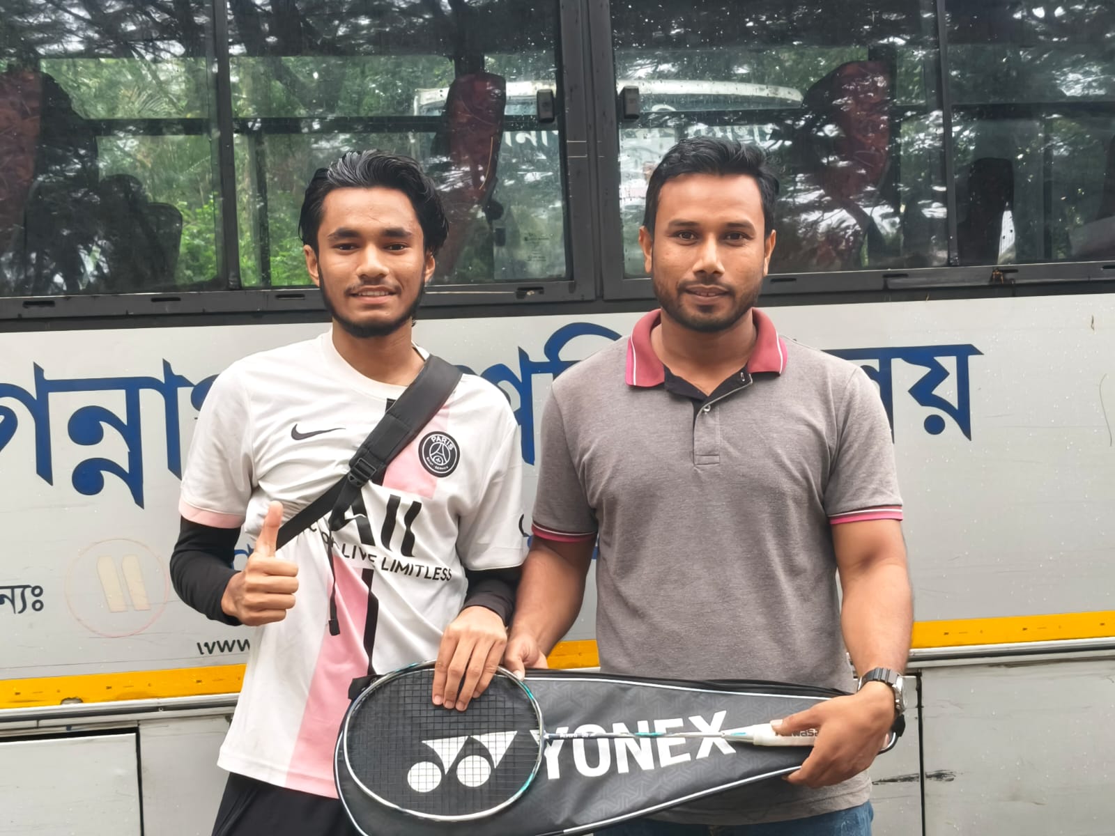 জগন্নাথ বিশ্ববিদ্যালয়ের (জবি) আন্তঃবিভাগ ব্যাডমিন্টন টুর্নামেন্টে সেমিফাইনালে ওঠা শিক্ষার্থী হাবিবুর রহমানকে ব্যাট উপহার দিয়েছেন ছাত্রদল নেতা শাহরিয়ার হোসেন।