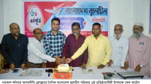 মো: মোমিন খাঁন, স্টাফ রিপোর্টার (বগুড়া) : বগুড়ার আদমদীঘিতে “দৈনিক বাংলাদেশ বুলেটিন” পত্রিকার ৬ষ্ট প্রতিষ্ঠাবার্ষিকী ব্যাপক উৎসাহ উন্নীপনার মধ্য দিয়ে পালন করা করেছে। গতকাল শনিবার (২৫ নভেম্বর) বেলা ১২ টায়…
