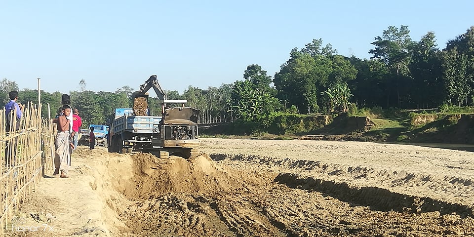 লোহাগাড়ার কলাউজান টংকাবতি খাল থেকে অবৈধভাবে বালু উত্তোলন।