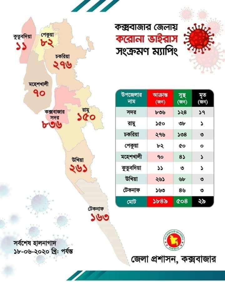কক্সবাজার জেলায় করােনা ভাইরাস সংক্রমণ ম্যাপিং শীর্ষে সদর উপজেলা