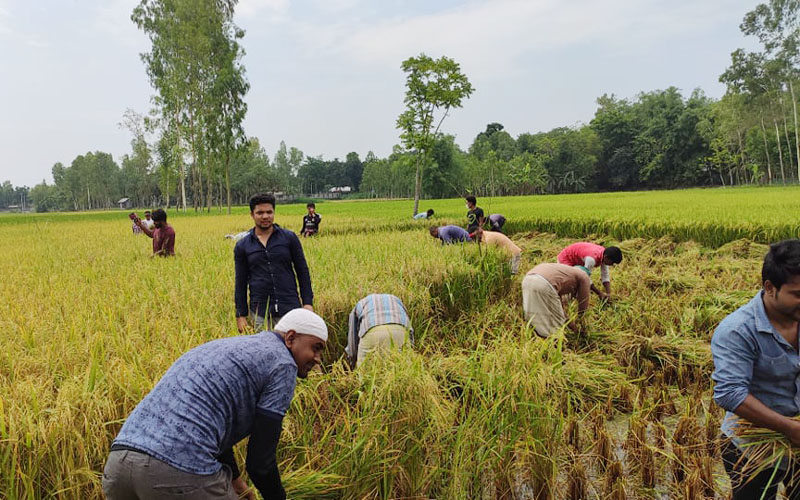 ফুলবাড়ীতে রোযা রেখে অসহায় কৃষকের ধান কেটে মাড়াই করে দিল ছাত্রলীগ