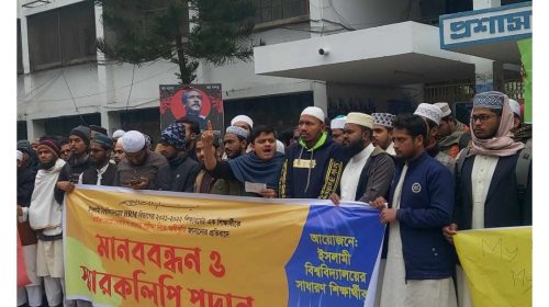 ছাত্রীর নেকাব না খোলায় ভাইভা পরীক্ষা নেননি শিক্ষক : ইবিতে সাধারণ শিক্ষার্থীদের মানববন্ধন